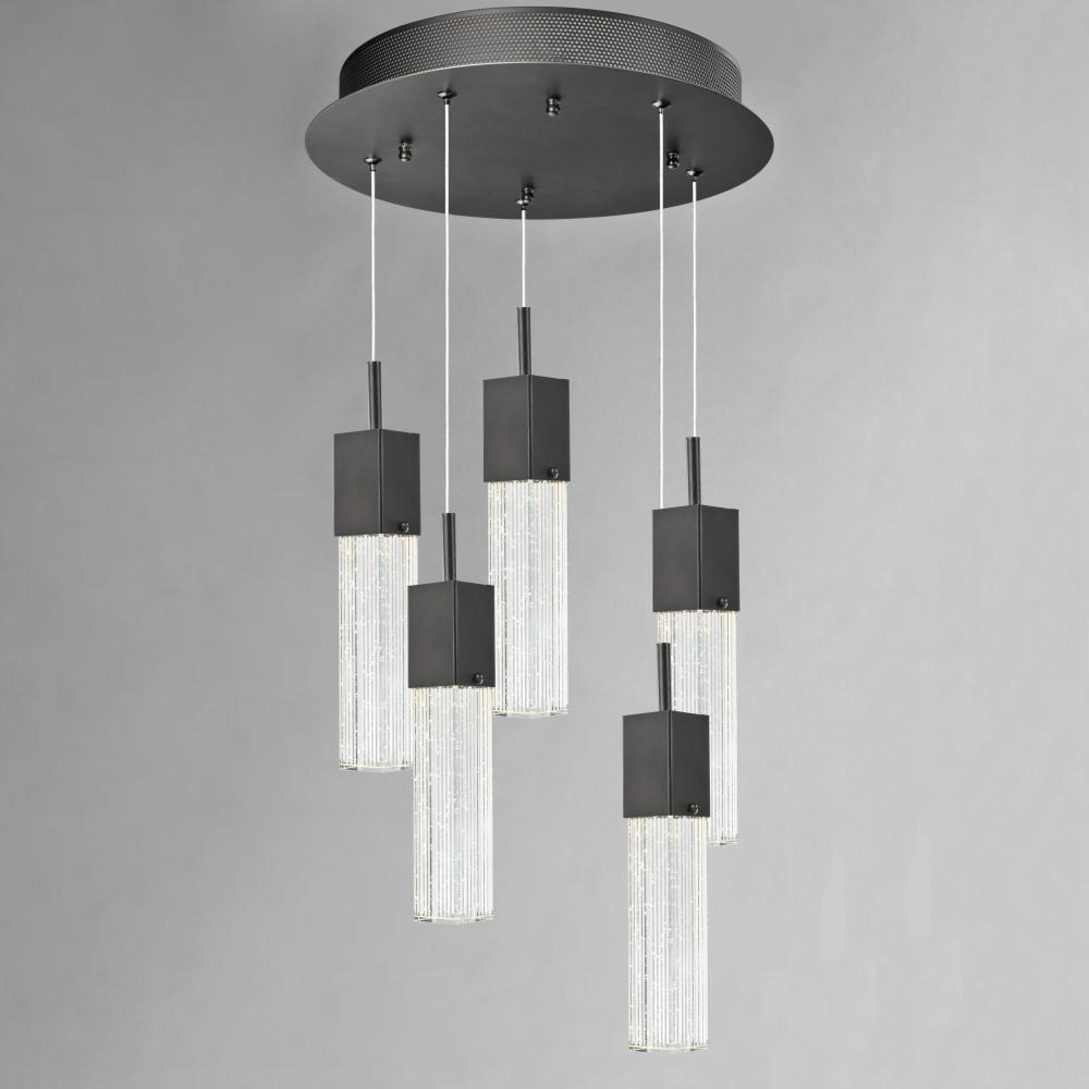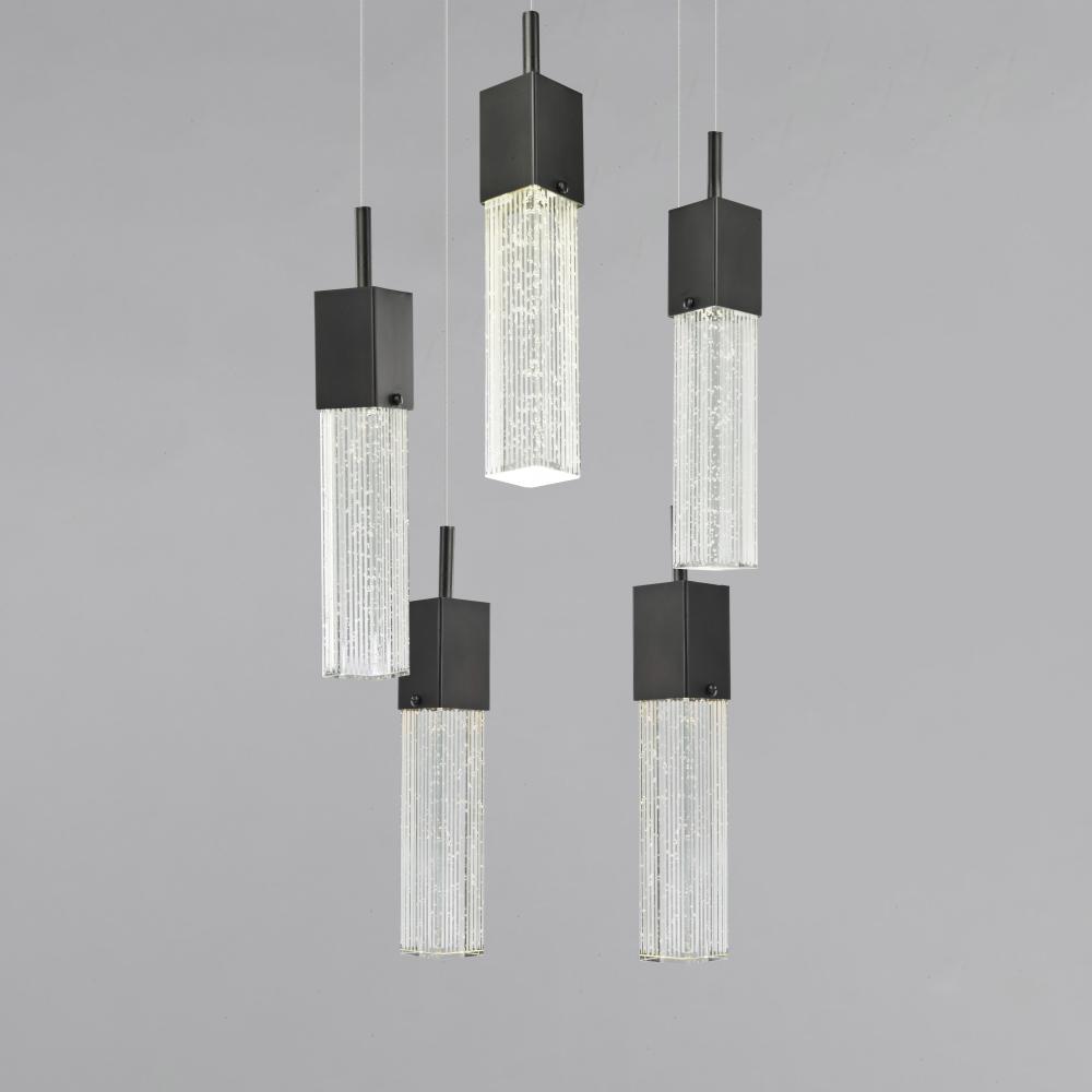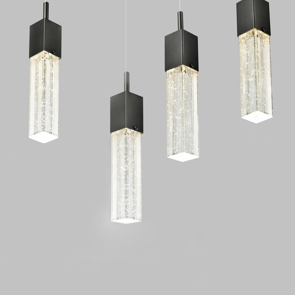 The Fizz Collection's effervescent bubbles encased in rectangular glass cubes come to life when illuminated by high output LEDs. The etched lines add linear detail as they extend from the Polished Chrome fitters.