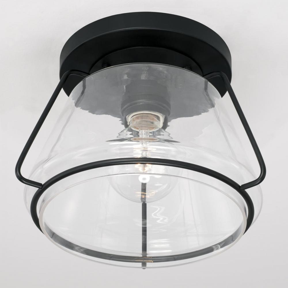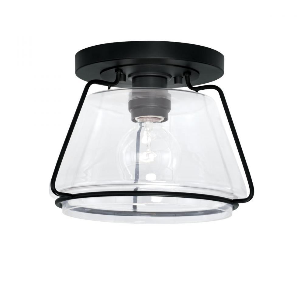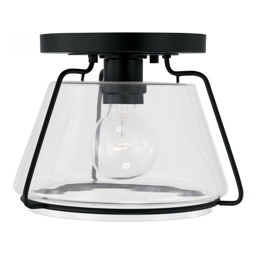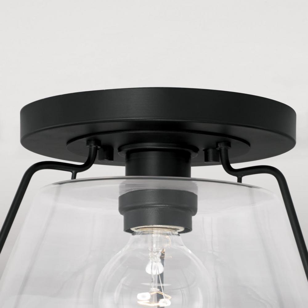 DETAILS: Vintage-inspired, 1-Light Flush Mount with a Matte Black finish and tapered clear glass cloche.