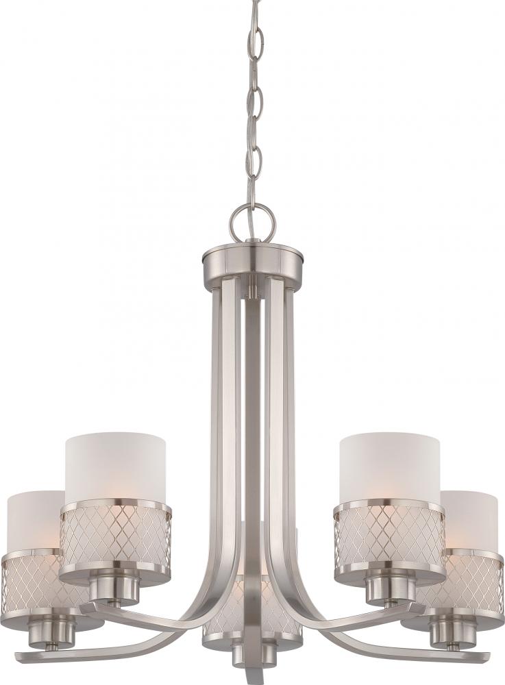 Fusion - 5 Light Chandelier with Frosted Glass - Brushed Nickel Finish