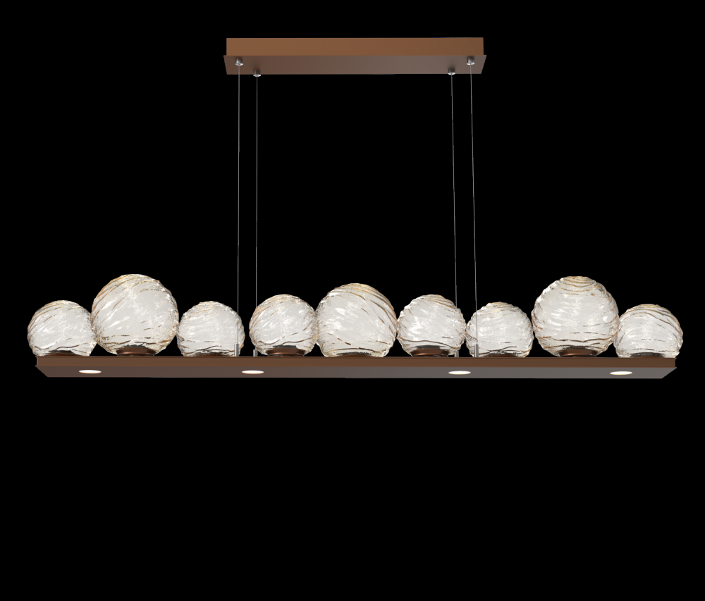 Gaia 59 - inch Platform Linear - Burnished Bronze - Amber Blown Glass - Stainless Cable - LED - 3000K