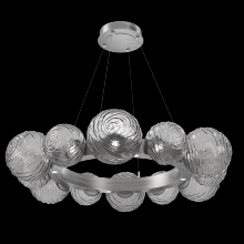 Gaia 39 - inch Radial Ring - Burnished Bronze - Amber Blown Glass - Stainless Cable - LED - 3000K