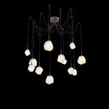 Gem Round 12pc Swag Multi - Pendant - Metallic Beige Silver - Amber Blown Glass - Cloth Braided Cord - LED - 2700K