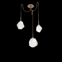 Gem Round 3pc Swag Multi - Pendant - Metallic Beige Silver - Amber Blown Glass - Cloth Braided Cord - LED - 2700K