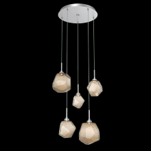 Gem Round Multi-Port-05-Metallic Beige Silver-Blown Glass Gem - Amber-Silver Cloth Braided Cord-LED - Ready to Ship