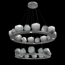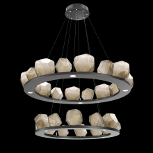 Two Tier Gem Ring Chandelier - 2B - Flat Bronze - Amber Blown Glass - Stainless Cable - LED - 2700K