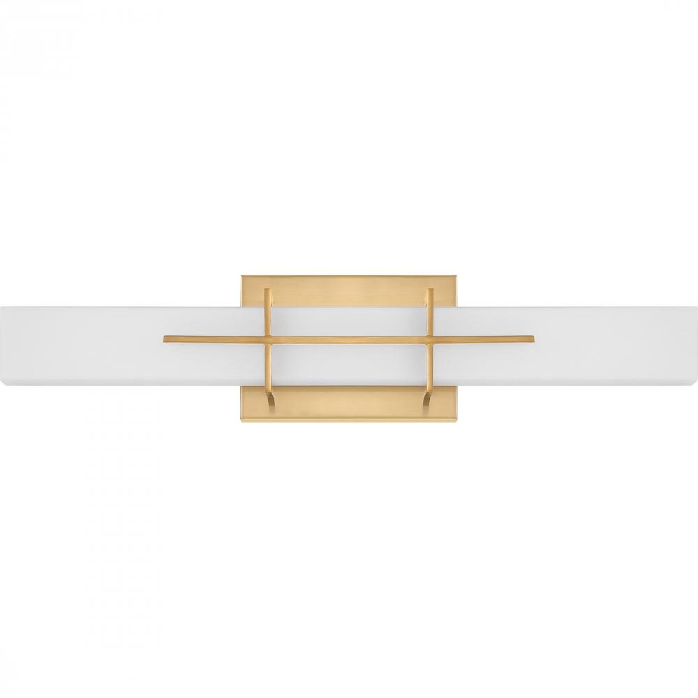 The Gemini collection is the perfect updated look for your bathroom. The modern style of this fixture is available in an Aged Brass or Polished Chrome finish, and is paired with an opal etched glass shade. The integrated LED light source provides energy sa