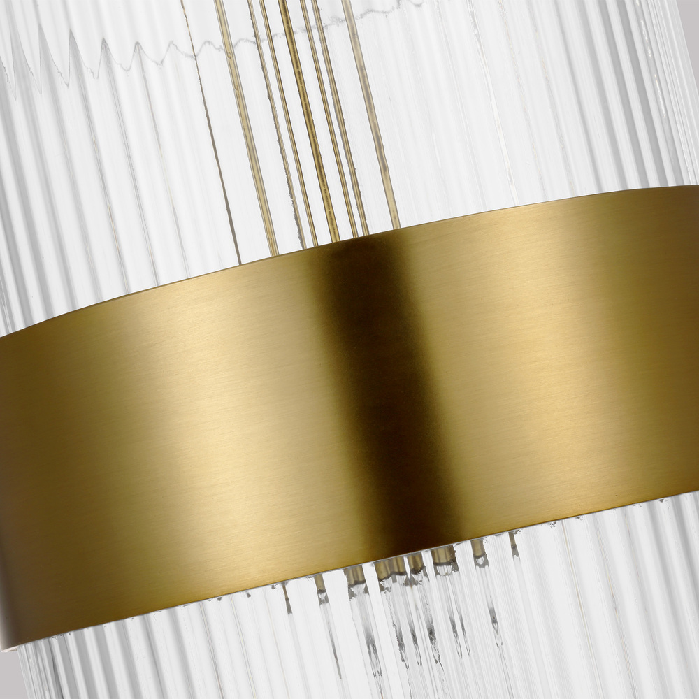 In the Geneva one light indoor pendant, a fluted shade forms an elegant, dynamic silhouette that's balanced by a strong frame of Burnished Brass or Polished Nickel.