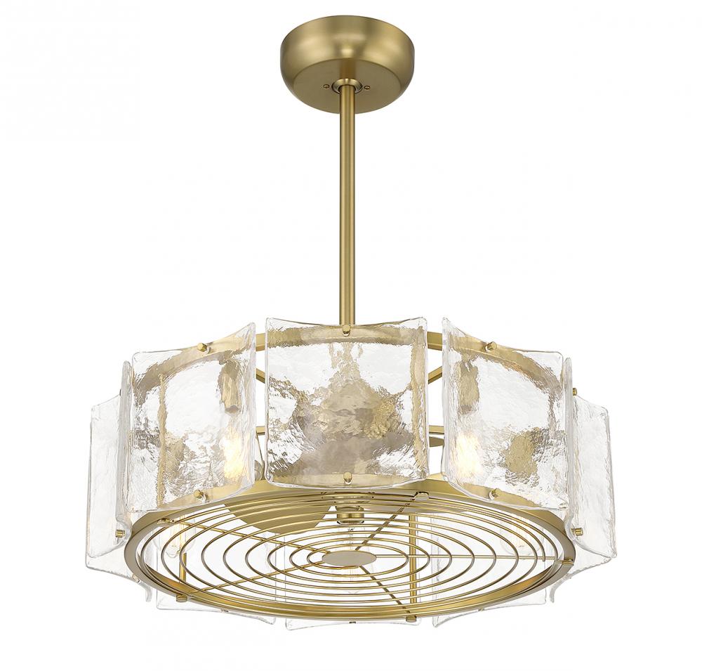 Bring a beautiful ocean-inspired lighting look to your home with the Savoy House Genry 5-light Fan D'Lier. This design is decorated with rippling panes of handmade glass and finished in warm brass. Genry is 17.13" in height and 26.5" in width. Five 6-watt standard size LED bulbs are included. Fan D’Liers are a Savoy House exclusive that combines the best of ceiling fans with the best of chandeliers in one fabulously fashionable fixture. These custom designs are inspired by high-end designer styles and take top trends to a whole new level.