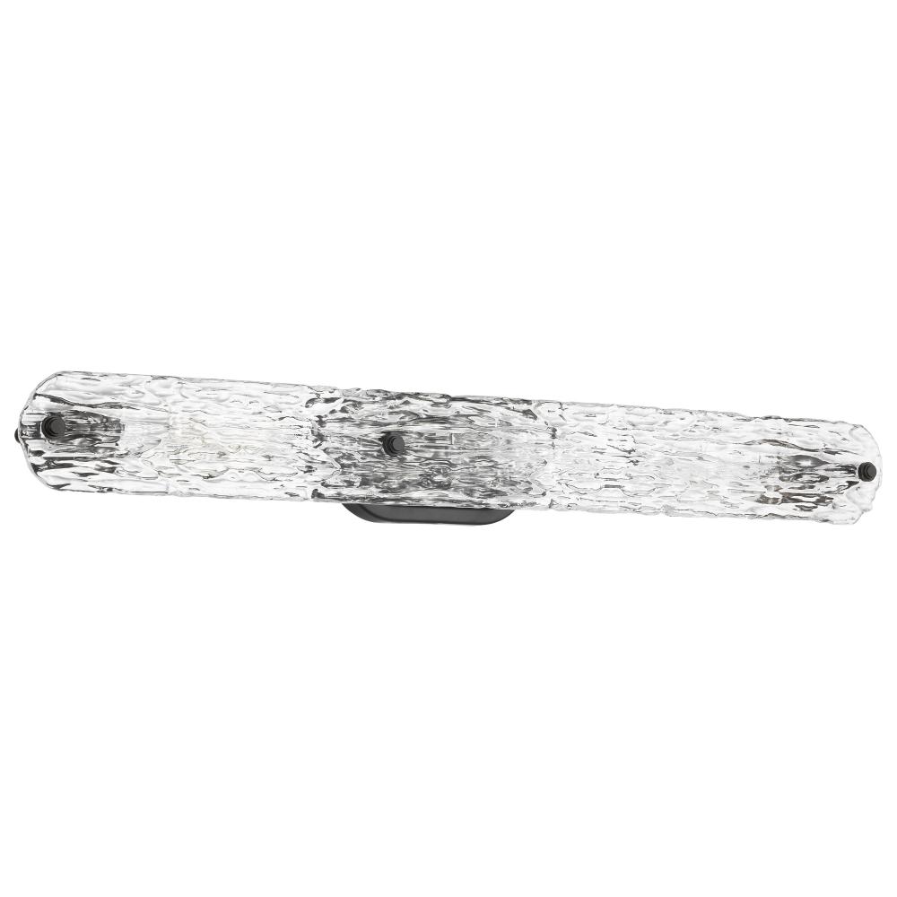 The Glacier 60-7813 three light vanity light is styled with contemporary elements and rich finishes. A deep black adorns the fixture body and socket covers, an arresting ice glass completes the sleek silhouette. Pairing this wonderful fixture with vintage