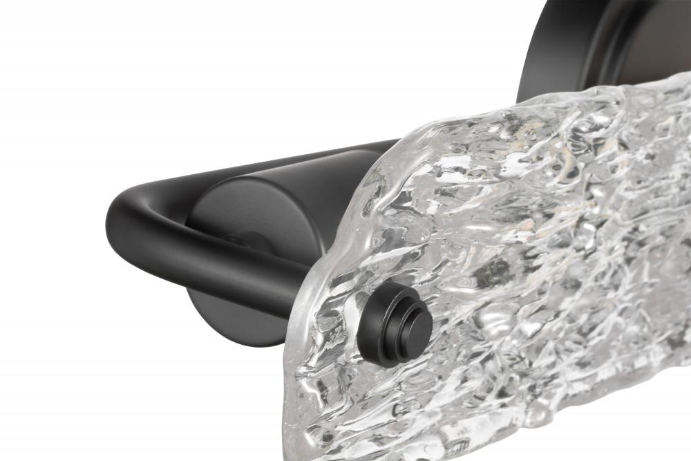 The Glacier Collection is comprised of vanity lights and a matching flush mount, styled with contemporary elements and rich finishes. A deep black adorns the fixture body and socket covers, an arresting ice glass completes the sleek silhouette. Bring panac