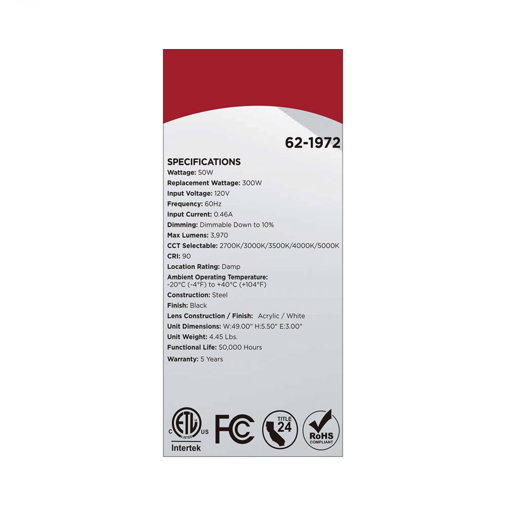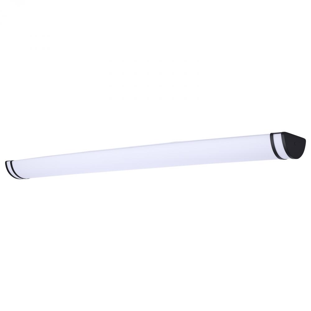 The SATCO NUVO 62-1972 Glamour 49-inch Vanity Fixture in white with a black finish combines sleek design with 5 CCT selectable technology (2700K–5000K) and 90 CRI illumination for superior color rendering. This 50-watt fixture replaces 300W incandescent