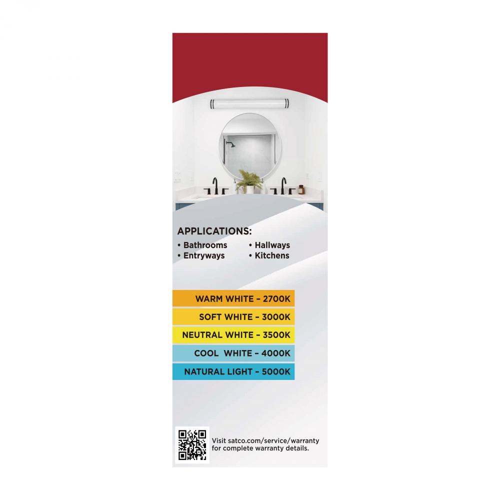 The SATCO NUVO Glamour and Crispo LED collections offer sleek, sophisticated lighting with 5 CCT selectable technology (2700K–5000K) and 90 CRI illumination. The Crispo Collection, available in White, includes 25-inch and 49-inch vanity fixtures and a wa