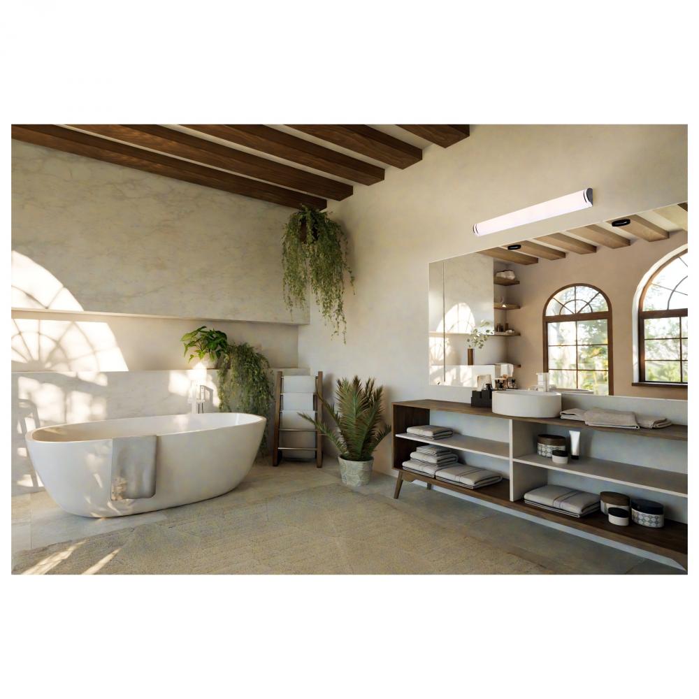 The SATCO NUVO 62-1880 Glamour 50-inch Linear Fixture in Brushed Nickel combines modern design with 5 CCT selectable technology (2700K–5000K) and 90 CRI illumination for enhanced color rendering. This 50-watt fixture replaces 300W incandescent lighting,