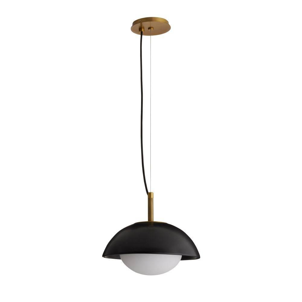 AN ULTRA-VERSATILE PENDANT THAT OFFERS DYNAMIC CONTRAST THROUGH MODERN AND SEEMINGLY HANDCRAFTED MATERIALS, LIGHT AND DARK HUES AND THOUGHTFUL DETAILING. THE GLAZE PENDANT'S MATTE BLACK CERAMIC BOWL SHADE IS SUSPENDED FROM A KNURLED ANTIQUE BRASS METAL PIN AND WOVEN BLACK FABRIC CORD. THE PENDANT'S OPAL FROSTED GLASS PROVIDES A SOFT, FLATTERING GLOW THAT IS REFLECTED AND DIFFUSED BY THE SHADE'S MATTE FINISH. DAMP-RATED, ALTHOUGH LIMITED COVERED OUTDOOR AREAS MAY AFFECT FINISH.