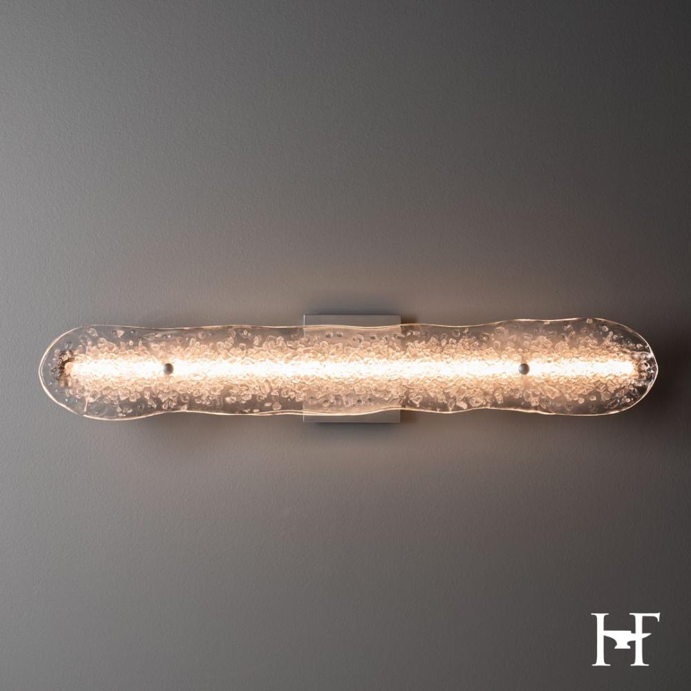 Inspired by jagged edges of ice on a midwestern pond, designer Andy Morter saw something rare and beautiful. With its heavily textured, large frit glass element, the Glissade LED Bath Bar features clear, hand-poured glass to great effect. Position horizontally above a mirror, or vertically on either side, the Glissade casts just the right light.