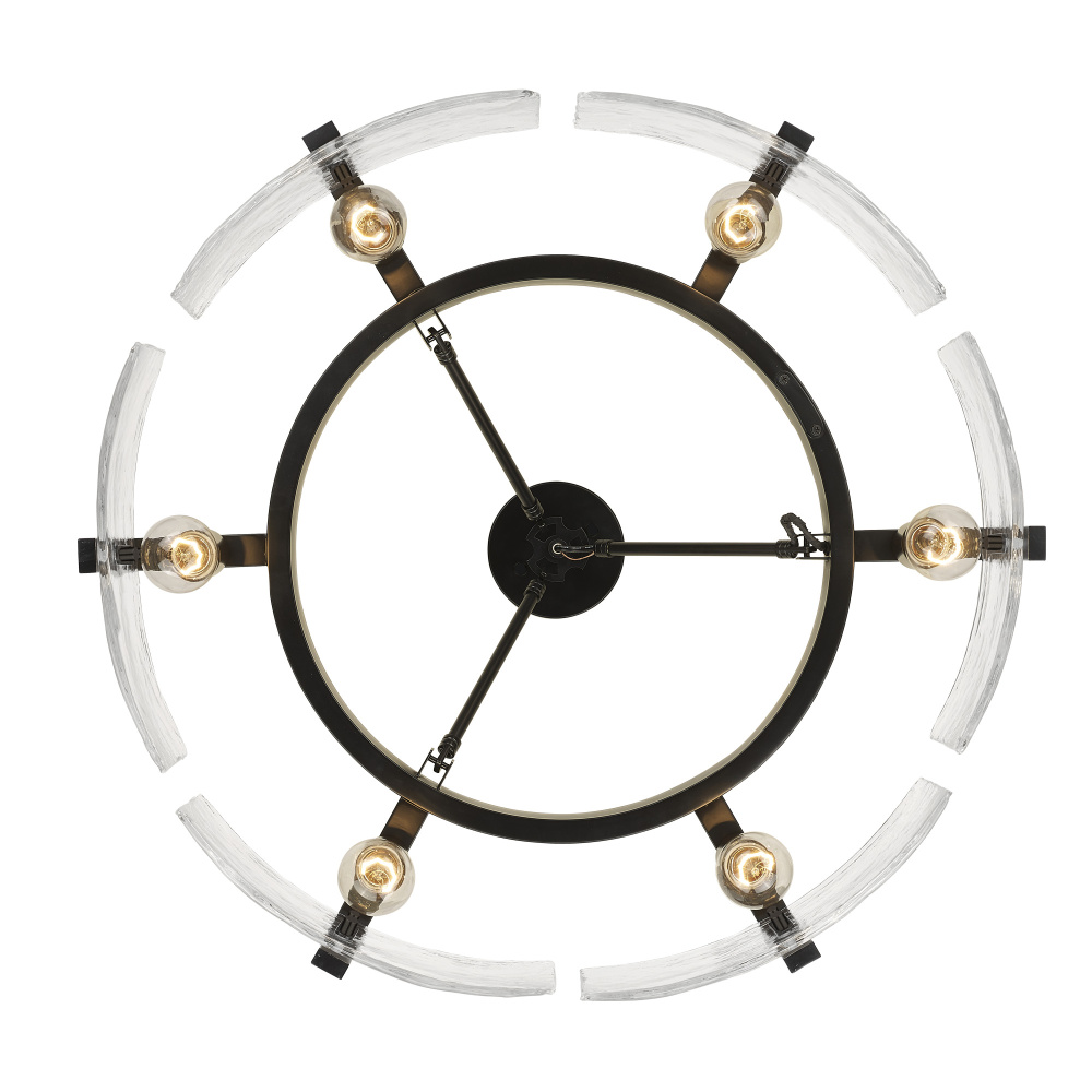 Bring nature-inspired elegance into your home with the Golden Lighting Aenon 6-light Semi-Flush Mount in Matte Black. Featuring a glass shade and a matte black frame, it creates a welcoming atmosphere. The glass shade showcases hammered water glass, celebrated for its uniquely textured surface, reminiscent of ice and flowing water. This remarkable design captures light in intricate patterns, transforming any space. The matte black finish offers a timeless, smooth surface that complements various decors, enhancing every room's aesthetic. Perfect for entryways, kitchens, and living areas, this fixture is damp location rated for covered spaces. Its adjustable height ranges from 8.75" to 14", providing versatility for low ceilings. Overall Dimensions: 27.75"W x 8.75"H x 27.75"D. Requires 6 E26 Medium base bulbs (not included), max 60 watts each. The Golden Lighting Aenon Semi-Flush Mount is a stunning blend of modern design and exceptional craftsmanship, making it an excellent choice for any contemporary setting.