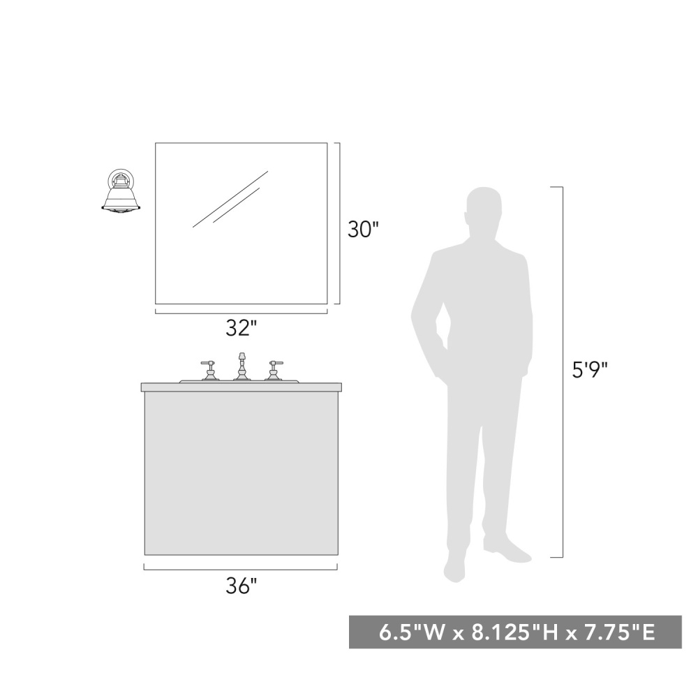 Bring industrial elegance into your home with the Golden Lighting Bartlett 1-light Vanity in Copper Patina. Featuring a metal shade and a Copper Patina frame, it creates a welcoming atmosphere. The metal shade highlights the rustic charm of the design, defined by a deep, oxidized copper base with a chalky patina that tells a story of exposure to the elements. The Copper Patina finish showcases a highly-textured, matte sheen that enhances its artisan quality, making it perfect for rustic and refined spaces. Ideal for illuminating bathrooms, this fixture is damp location rated, suitable for covered and semi-enclosed spaces with occasional moisture. It measures 6.5"W x 8.13"H x 7.75"D and requires 1 E26 Medium base bulb (not included), with a maximum wattage of 100. Add a touch of classic industrial charm to your decor with this versatile vanity light that complements various design aesthetics while providing practical illumination.