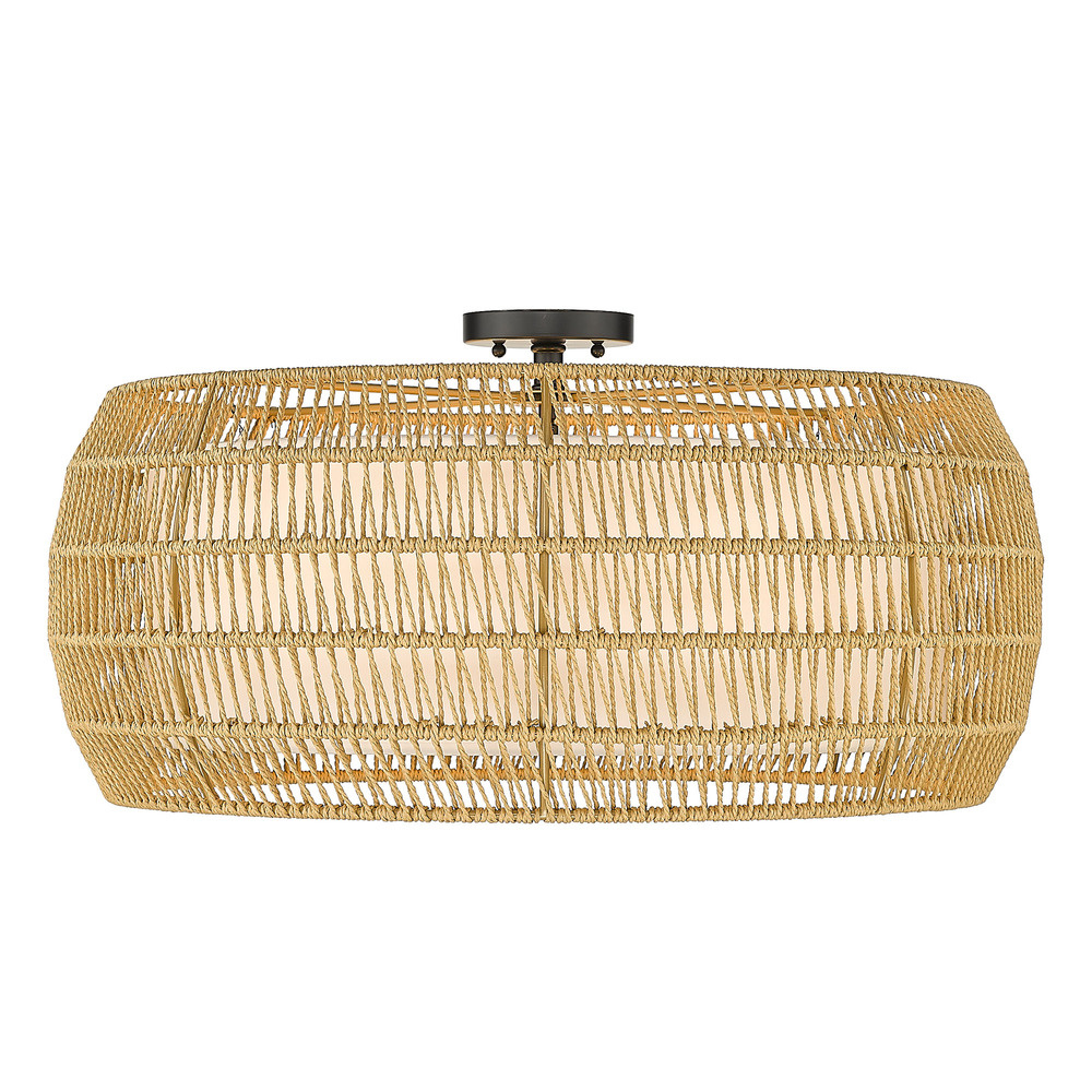 Golden Lighting Everly 6-light Semi-Flush Mount in Matte Black and Natural Rattan shade