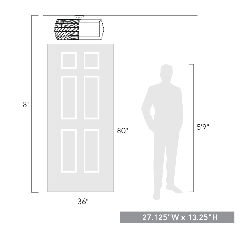 Bring coastal elegance into your home with the Golden Lighting Everly 6-light Semi-Flush Mount. Featuring a Wicker shade and a Matte Black frame, it creates a welcoming atmosphere. This eye-catching wicker shade, crafted from natural Raphia Rope, offers a highly textural and organic appearance that enhances the earthy, tactile quality of your space. The Matte Black finish embodies timelessness with a smooth, non-reflective surface, offering an understated elegance that complements various decor styles. Versatile for entryways, bedrooms, kitchens, and living areas with mid-height ceilings, this fixture is Damp Location Rated, suitable for bathrooms and covered porches. The convertible construction allows for flexible installation, making it ideal for low or high ceilings. Overall Dimensions: 27.13"W x 13.25"H x 27.13"D. Requires 6 E12 Candelabra base bulbs (not included), with a maximum wattage of 60 per bulb. Transform your space with this stunning fixture, combining style, functionality, and quality.