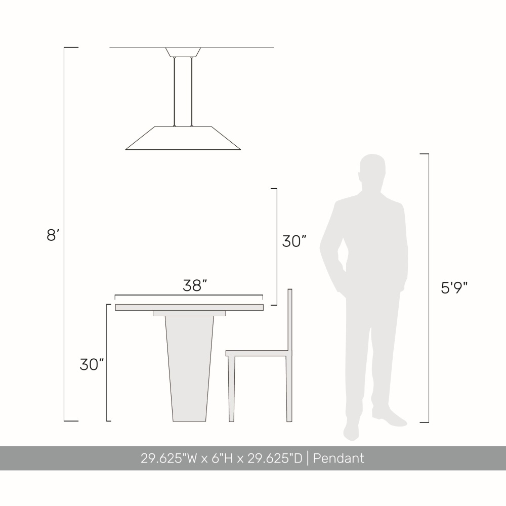 Bring modern elegance into your home with the Golden Lighting Faroe 30in Integrated LED Pendant. Featuring a felt shade and a sleek Matte Black frame, it creates a welcoming atmosphere. This minimalist design boasts a unique two-tone felt shade, with a flecked black exterior that enhances sound-dampening qualities while providing a neutral, glare-free illumination. The Matte Black finish is smooth to the touch and versatile, complementing a range of decor styles. Ideal for kitchens, dining rooms, or entryways, this fixture is dry location rated, ensuring safety in indoor spaces not subject to moisture. Its adjustable height makes installation easy on sloped ceilings, with dimensions of 29.63"W x 6"H x 29.63"D. The integrated LED technology provides brilliant, energy-efficient illumination with 600 rated lumens and a warm 3000K glow. Elevate your space with this stylish and functional lighting solution that combines luxury and sustainability.