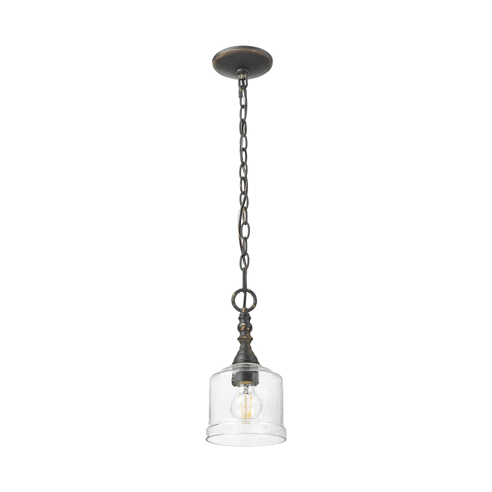 Golden Lighting Keating 1-light Pendant in Antique Black Iron and Hammered Water Glass