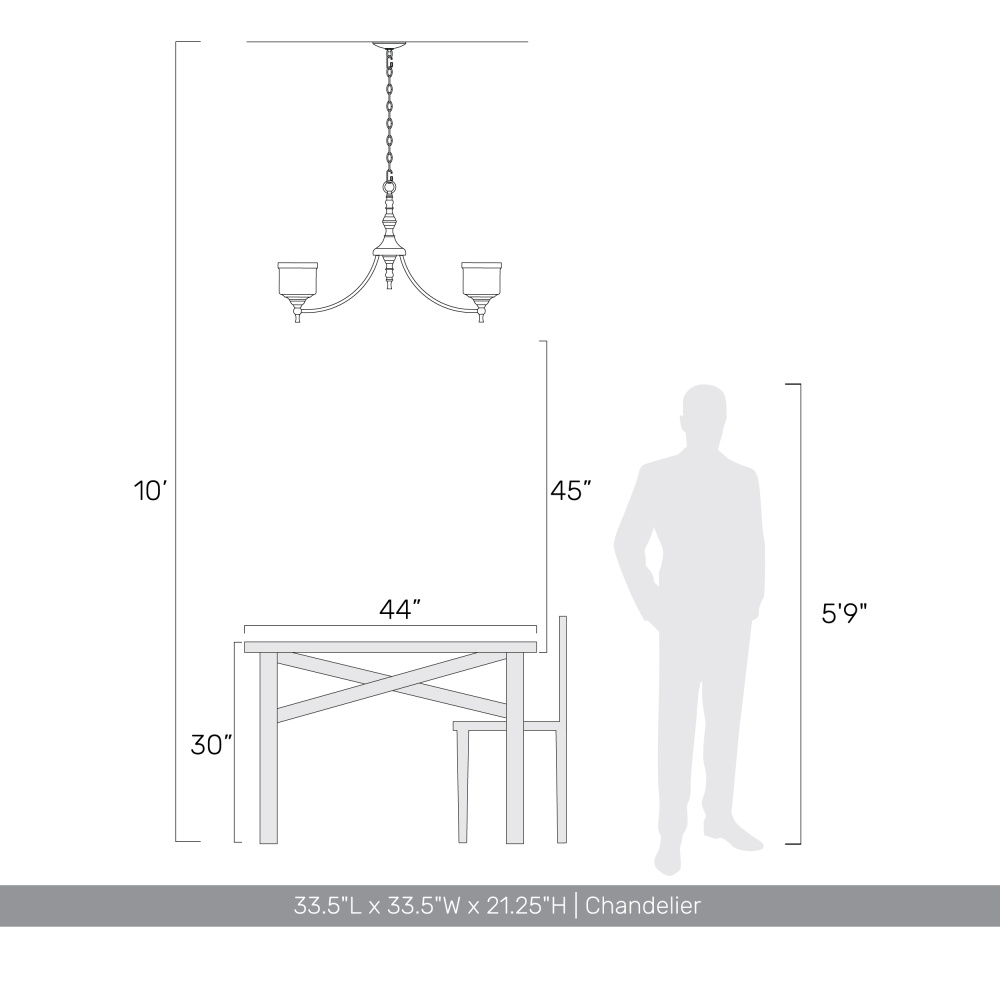 Bring industrial warmth into your home with the Golden Lighting Keating 6-light Chandelier. Featuring a glass shade and a captivating Antique Black Iron frame, it creates an inviting atmosphere. The hammered water glass shade offers a dynamic texture, which refracts light beautifully, casting intricate patterns to illuminate your space. Capture the raw, authentic charm of a bygone era with the Antique Black Iron finish, featuring a rugged, matte black layer artfully weathered to reveal glimpses of warm, antiqued gold underneath, adding a powerful statement of age and character. This chandelier makes a grand impression in dining rooms and foyers while elevating bedrooms and living spaces. Dry Location Rated, it is ideal for indoor spaces not subject to moisture, and it is easily installed on sloped ceilings with an adjustable height ranging from 24.625" to 98.25". Overall Dimensions: 33.5"W x 21.25"H x 33.5"D. Requires 6 E26 Medium base bulbs (not included), with a maximum wattage of 60 per bulb. Enhance your home décor with this exquisite, handcrafted piece that celebrates artistry and quality.
