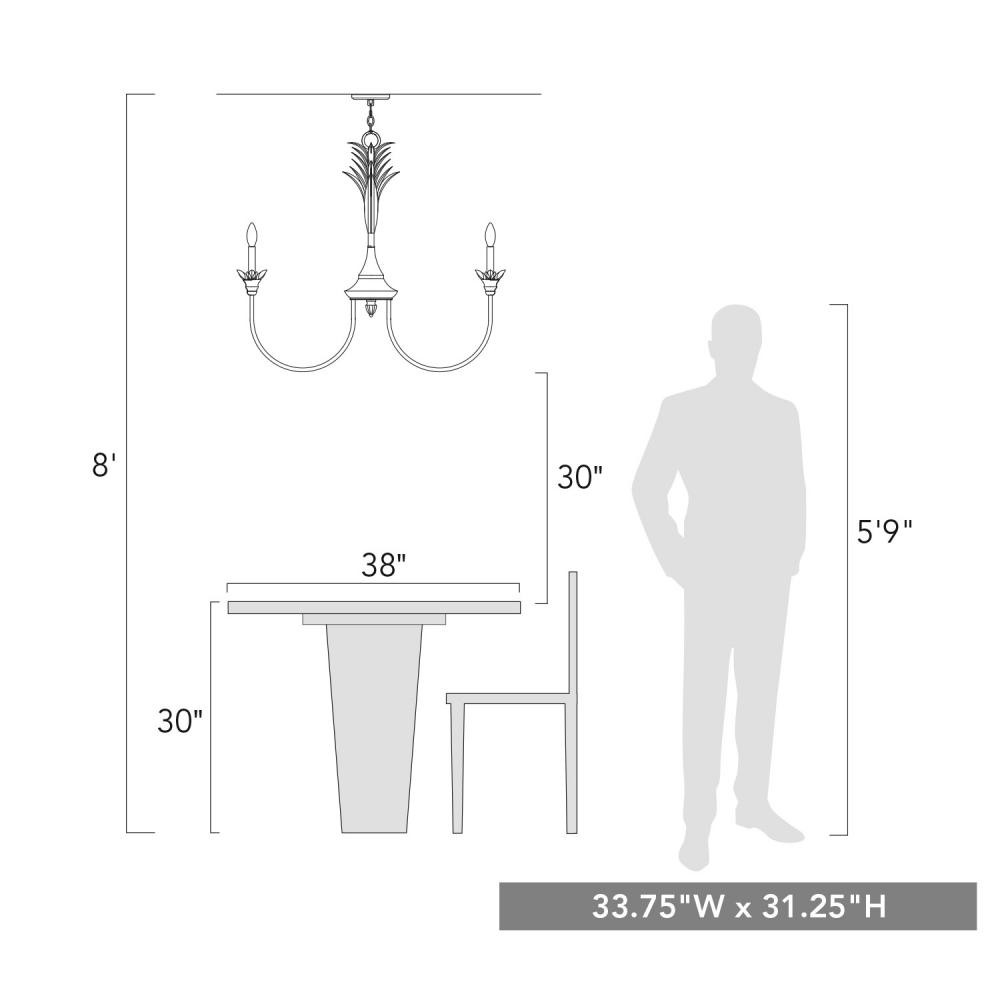 Bring nature-inspired elegance into your home with the Golden Lighting Lillianne 6-light Chandelier. Featuring an antique ivory finish, it creates a welcoming atmosphere. This chandelier features an exquisite design with no shade, allowing light to radiate freely, accentuating its floral and leaf motifs. Each piece is hand-painted with a unique finish that celebrates artisanal craftsmanship. The antique ivory finish offers a charming, rustic appearance that adds a romantic touch to your decor. Rated for dry locations, it is ideal for indoor spaces like dining rooms and living areas. The chandelier is sloped-ceiling compatible and features an adjustable height from 34.75" to 104.25", accommodating diverse ceiling types. It requires 6 E12 candelabra base bulbs (not included), each with a maximum of 60 watts. Overall Dimensions: 33.75"W x 31.25"H x 33.75"D. Elevate any space with this exquisite fixture that blends quality and style.