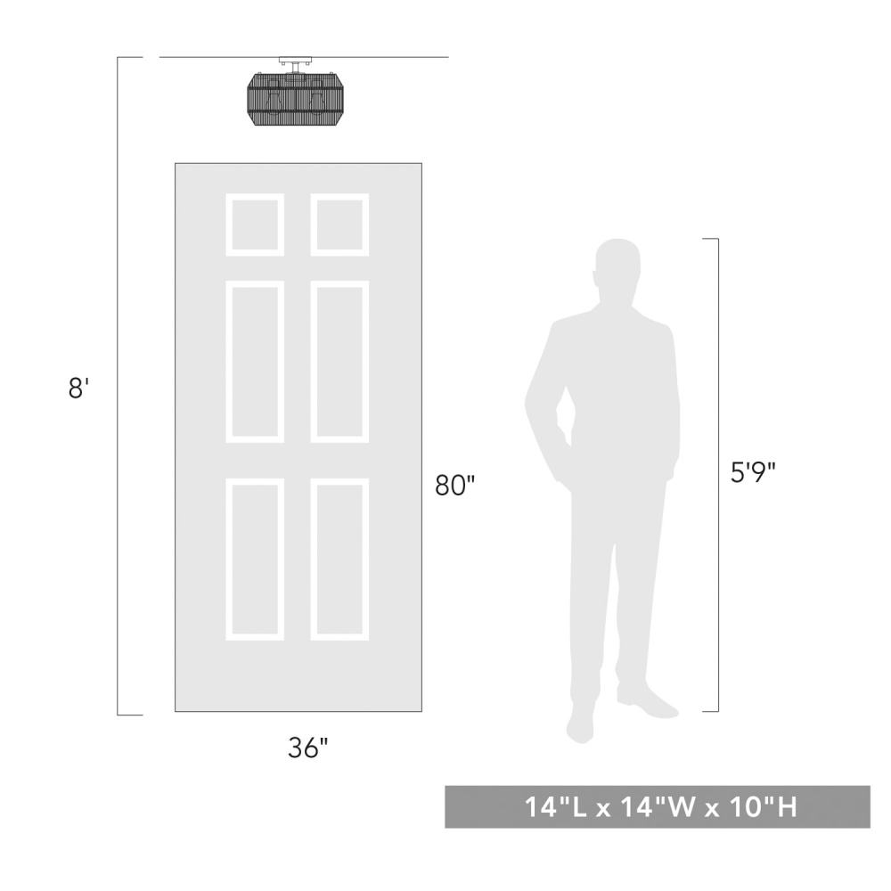 Bring Boho sophistication into your home with the Golden Lighting Marlee 3-light Semi-Flush Mount. Featuring a Rope shade and a Matte Black frame, it creates an inviting ambiance in various settings. The Natural Raphia Rope shade introduces an organic, hand-woven texture, evoking a breezy coastal feel. This beautifully crafted shade enhances the interplay of light and shadow, enriching the fixture's aesthetic. The Matte Black finish embodies clean, modern style, offering a timeless elegance that complements any décor, from minimalist to contemporary. This semi-flush mount is perfect for entryways, bedrooms, kitchens, and living areas with mid-height ceilings. Damp location rated, it is designed for spaces with occasional moisture. Overall Dimensions: 14"W x 10"H x 14"D. Requires 3 E26 Medium base bulbs (not included), max 100 wattage per bulb. Enhance your living experience with this blend of style and practicality, showcasing artisanal quality in your home.