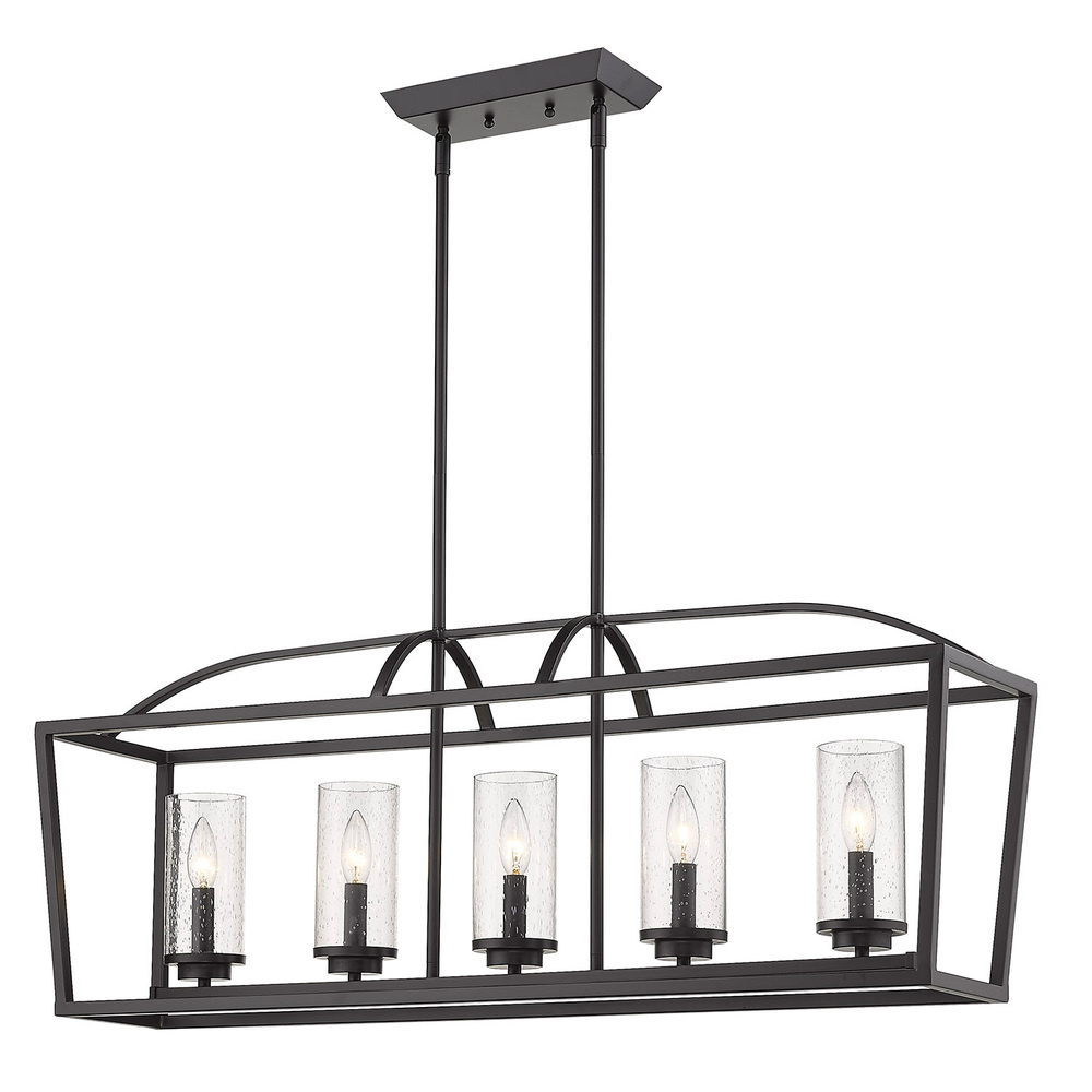 Golden Lighting Mercer 5-light Island Light in Matte Black and Seeded Glass