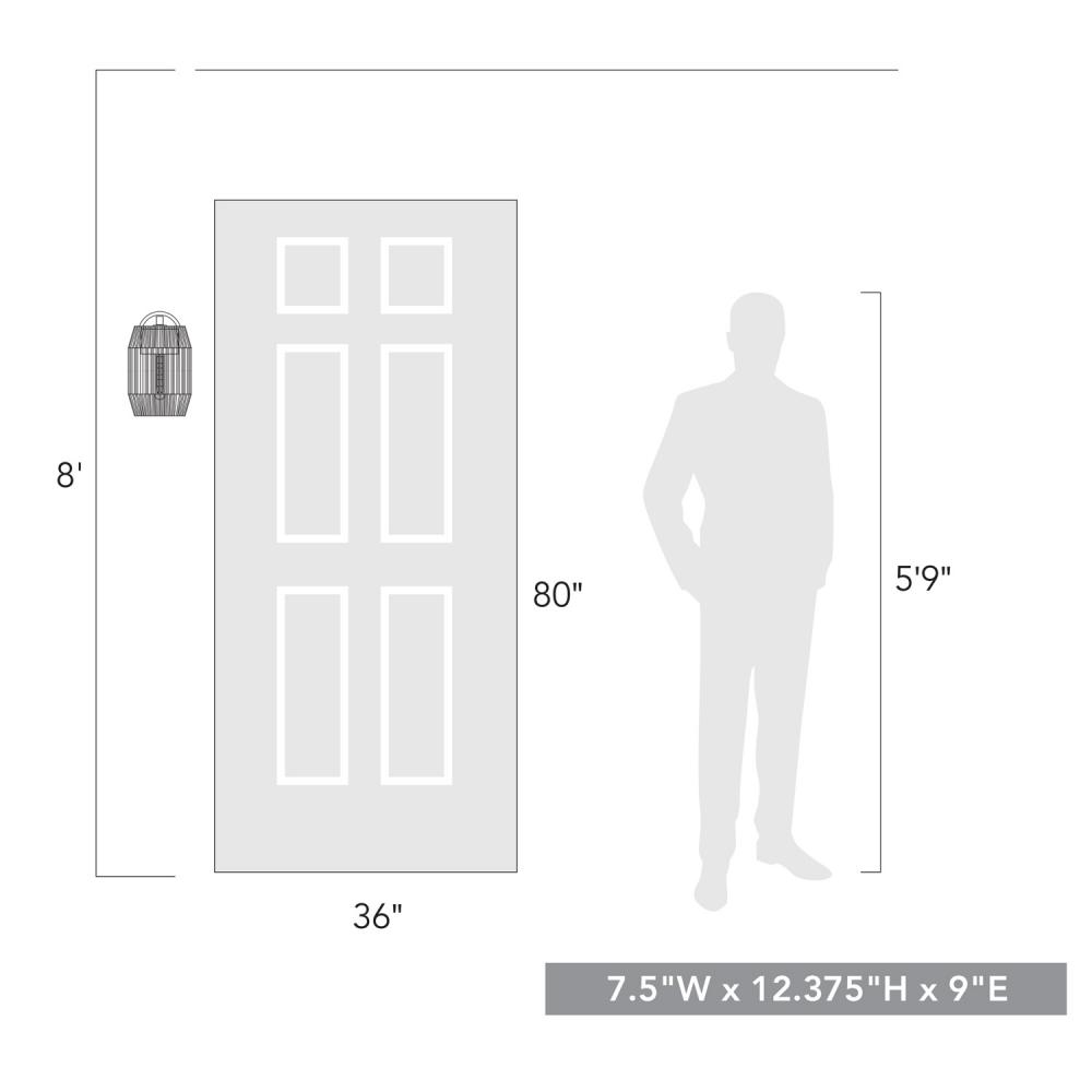 Bring boho sophistication into your home with the Golden Lighting Seabrooke 1-light Outdoor Wall in Natural Black. Featuring a glass shade and a Natural Black frame, it creates a welcoming atmosphere. The glass shade beautifully showcases a multi-tonal, twisted cord design reminiscent of sun-drenched beaches, casting airy patterns of light and shadow. Crafted with an open weave, this unique shade enhances organic appeal, perfect for a relaxed, coastal setting. Our Natural Black finish offers a gentler take on classic black, with a soft, chalky surface that complements various styles, from modern farmhouse to industrial. Functional and inviting at entryways, patios, and garage doors, this fixture is Wet Location Rated, designed to withstand direct exposure to rain and snow. Requires 1 E26 Medium base bulb (not included) with a maximum wattage of 60W. Dimensions: 7.5"W x 12.38"H x 9"D. Elevate your outdoor experience with the elegant durability and handcrafted quality of the Seabrooke light fixture.