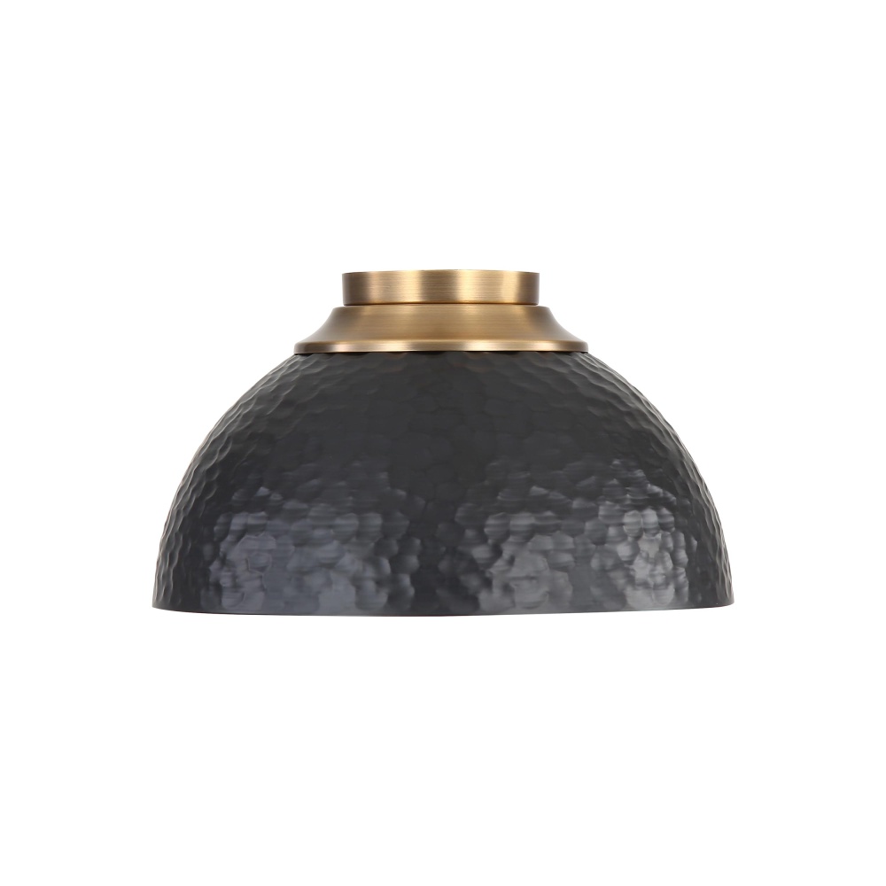 Bring traditional elegance into your home with the Golden Lighting Shepard 3-light Flush Mount. Featuring a metal shade and a Modern Brass frame, it creates a welcoming atmosphere. This metal shade in a luxurious Matte Black finish showcases a deep, uniform black color with a non-reflective matte sheen, absorbing light to provide a soft, sophisticated look. Our Modern Brass finish is the epitome of understated elegance, offering a softer, muted hue with a smooth, satin luster that beautifully diffuses light, adding a touch of classic warmth to your interiors. Ideal for low ceilings in hallways, closets, laundry areas, bathrooms, and more, this fixture is Damp Location Rated, suitable for covered spaces with occasional moisture. Requires 3 E26 Medium base bulbs (not included), with a maximum of 60 watts per bulb, all within dimensions of 13.75"W x 8"H x 13.75"D. Perfect for adding a touch of warmth and authenticity to your space, this flush mount fixture embodies both style and quality.