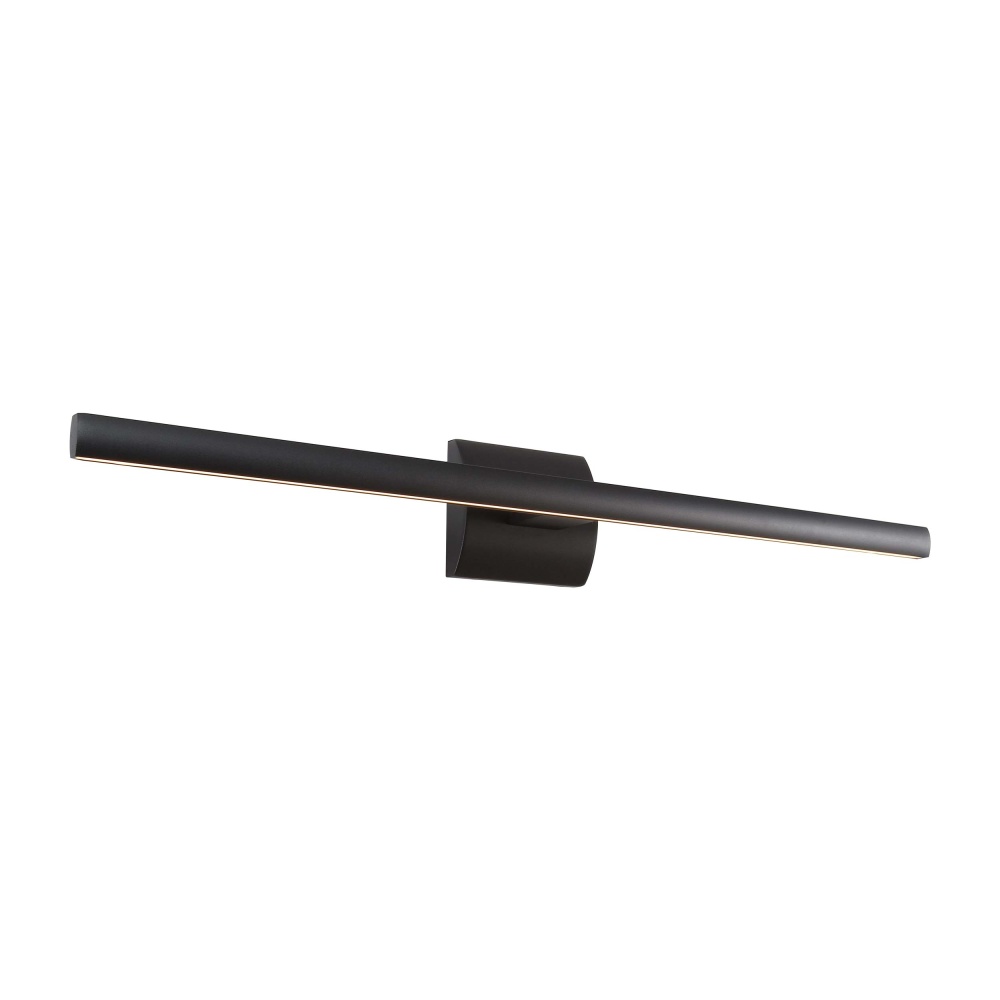 Bring modern elegance into your home with the Golden Lighting Vireo Integrated LED 28in Vanity in Sand Black. Featuring a sleek design and a Sand Black frame, it creates a welcoming atmosphere. This design utilizes integrated LED technology, which provides brilliant illumination while maintaining a clean, uncluttered profile. The Sand Black finish offers sophisticated texture with its deep black hue and matte surface, making it visually interesting and pleasing to the touch. Brighten up bathrooms with dedicated lighting that flatters while providing practical task illumination. Rated for damp locations, it's perfect for spaces with occasional moisture, like bathrooms and covered porches. The dimensions of this fixture are 28"W x 4"H x 4.5"D, and it features integrated LED technology that produces 900 lumens with a warm 3000K glow. Elevate your lifestyle with this high-quality, functional lighting solution.