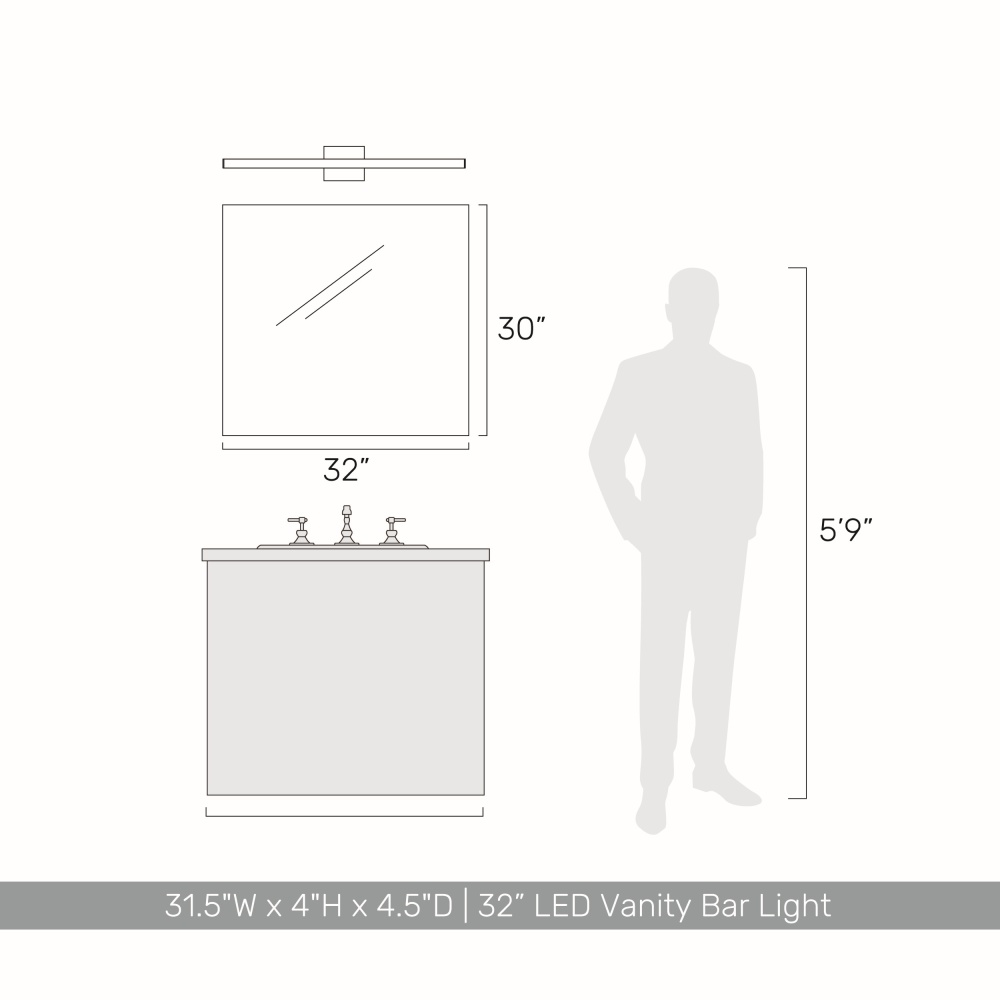 Bring modern elegance into your home with the Golden Lighting Vireo Integrated LED 32in Vanity in Sand White. This sleek fixture creates a welcoming atmosphere without the distraction of an accompanying shade. The Sand White finish provides a soft, organic look that beautifully absorbs light, making it ideal for contemporary aesthetics. The integrated LED technology ensures brilliant illumination without a traditional shade, casting a balanced, ambient glow that enhances your space. This fresh, textural finish offers a defining characteristic—a fine, uniform sandy texture that is pleasing to the touch. Designed for versatility, this fixture is perfect for damp locations, making it suitable for covered bathrooms and laundry rooms. The mounting options allow for horizontal or vertical installation, ensuring it meets your design needs seamlessly. Dimensions: Overall Dimensions: 31.75"W x 4"H x 4.5"D. Bulbs: Integrated LED technology offers a long-lasting, dimmable source providing 1080 rated lumens at a warm 3000K. Experience quality and style with this statement piece that complements a broad range of interiors.