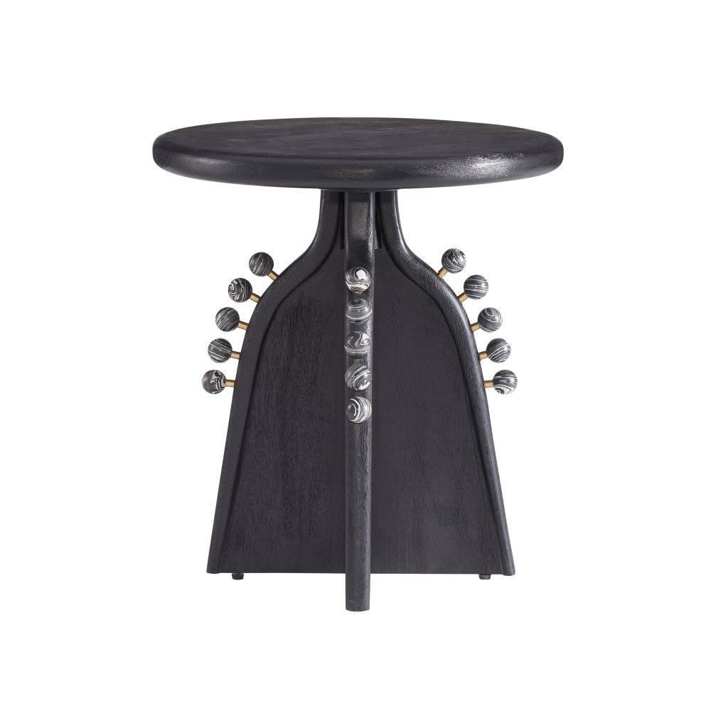 Reminiscent of a mixed-media sculpture, the Guillermo is an adaptable piece of art for the home. Carved of ebony mango wood and adorned with Venus marble orbs to resemble a spiny sea creature, this style offers a surprise from every angle. Finish will vary.