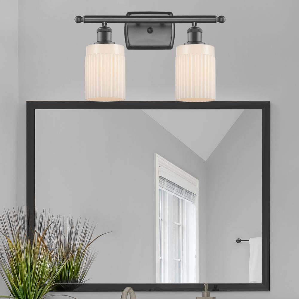 Hadley - 2 Light - 15 inch - Oil Rubbed Bronze - Matte White Shade - Bath Vanity Light