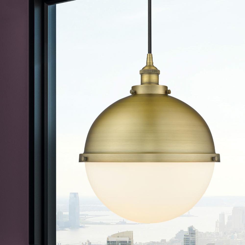 Hampden - 1 Light - 13 inch - Brushed Brass - Brushed Brass Hampden 12" with Matte White glass Shade - Cord hung - Pendant