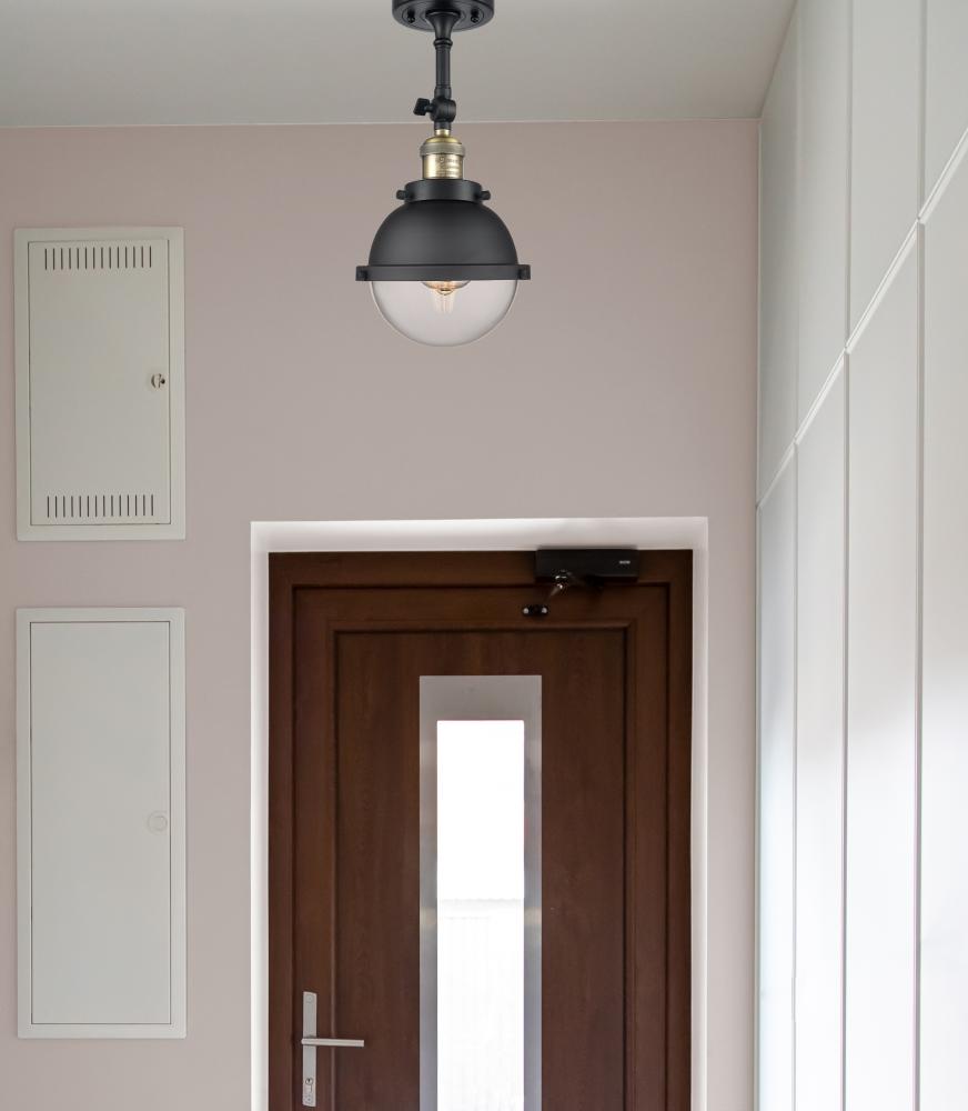Hampden - 1 Light - 7 inch - Black Antique Brass - Matte Black Hampden 6" with Clear glass Shade - Semi-Flush Mount