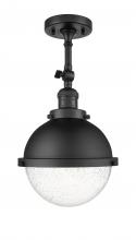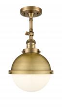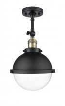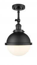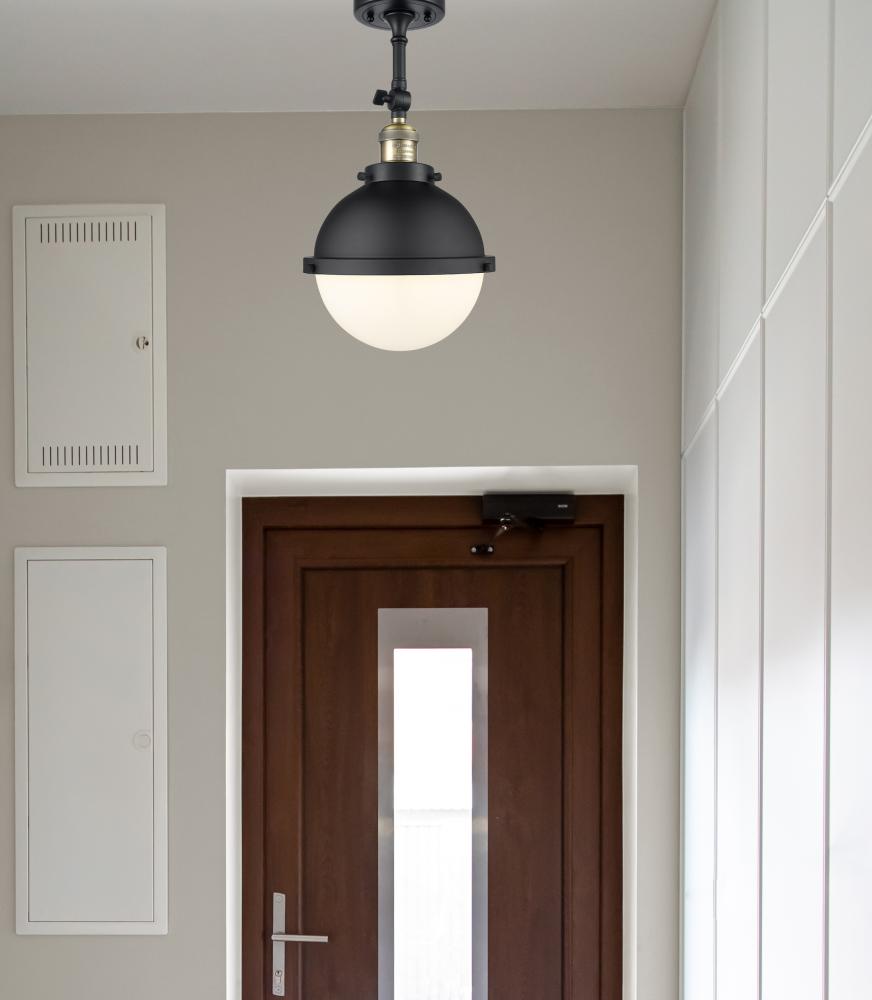 Hampden - 1 Light - 9 inch - Black Antique Brass - Matte Black Hampden 8" with Matte White glass Shade - Adjustable Semi-Flush Mount
