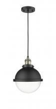 Hampden - 1 Light - 9 inch - Black Antique Brass - Matte Black Hampden 8" with Matte White glass Shade - Cord hung - Mini Pendant