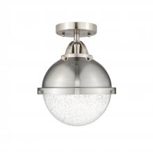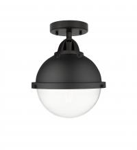 Hampden - 1 Light - 9 inch - Black Antique Brass - Matte Black Hampden 8" with Matte White glass Shade - Semi-Flush Mount