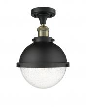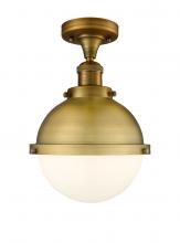 Hampden - 1 Light - 9 inch - Black Antique Brass - Matte Black Hampden 8" with Matte White glass Shade - Semi-Flush Mount