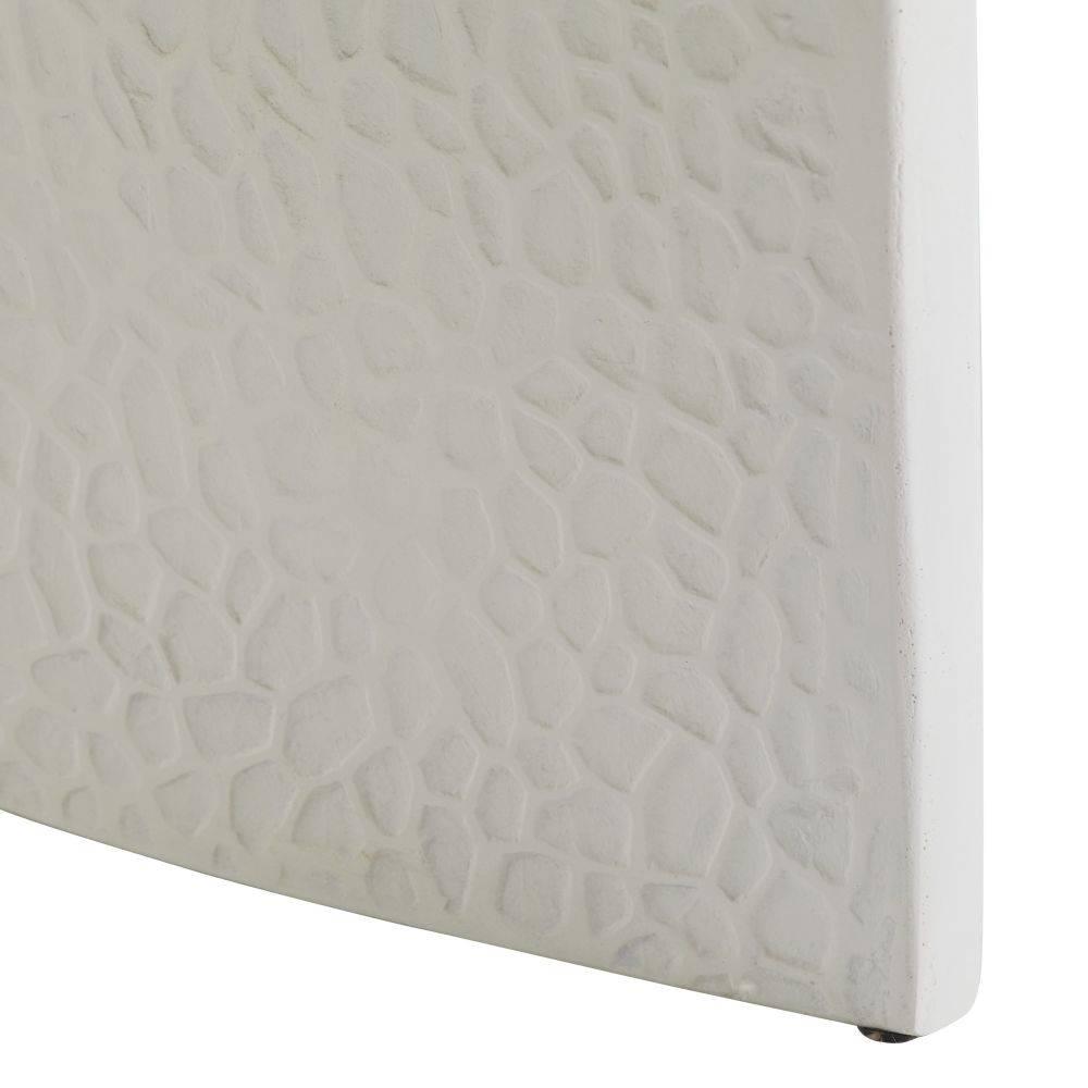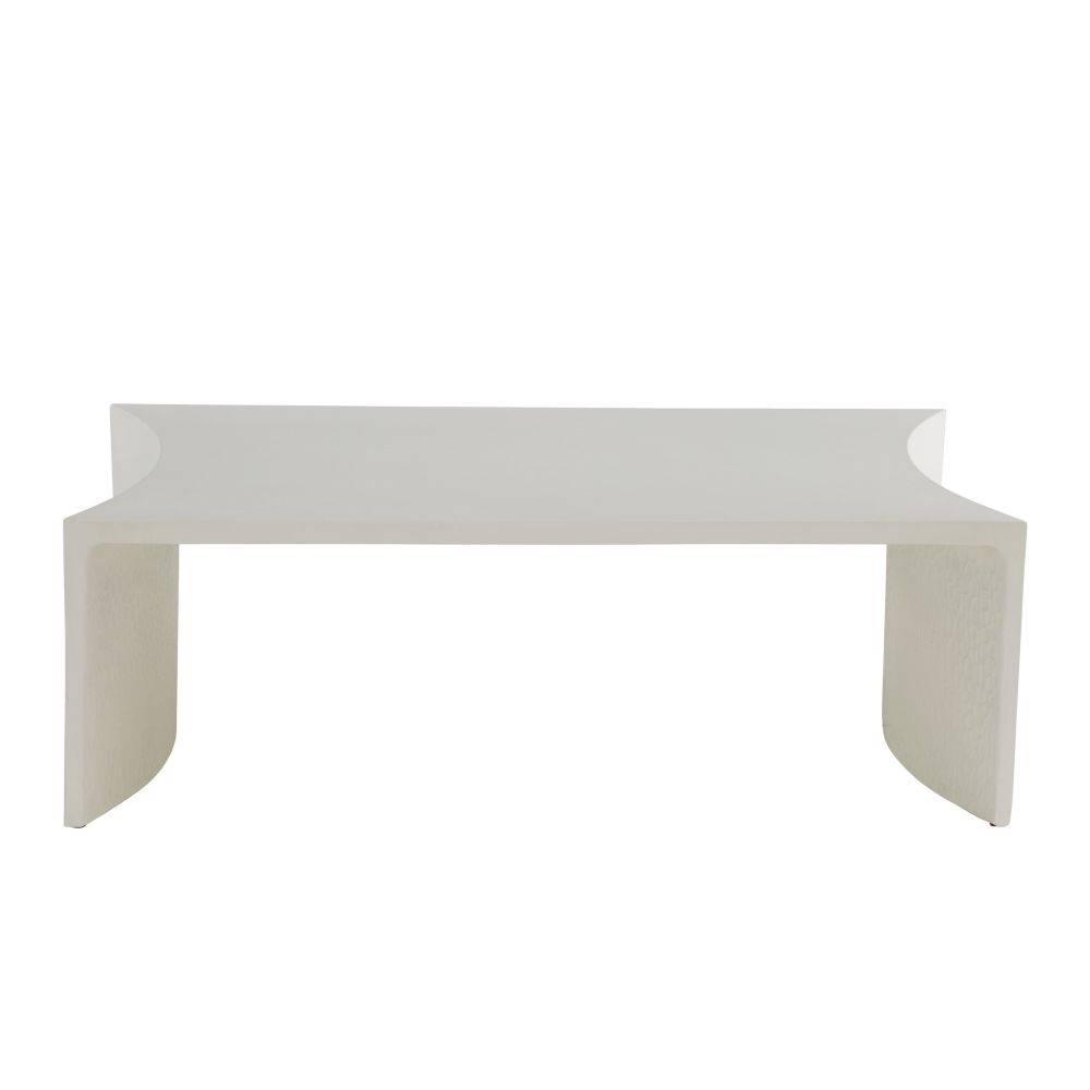 We refined Haney's bold silhouette with gently curved sides for added dimensionality. Cast of ivory concrete composite, this elegant cocktail table features dual inside panels textured to recall a coral reef, adding to the resonant form. Finish will vary.