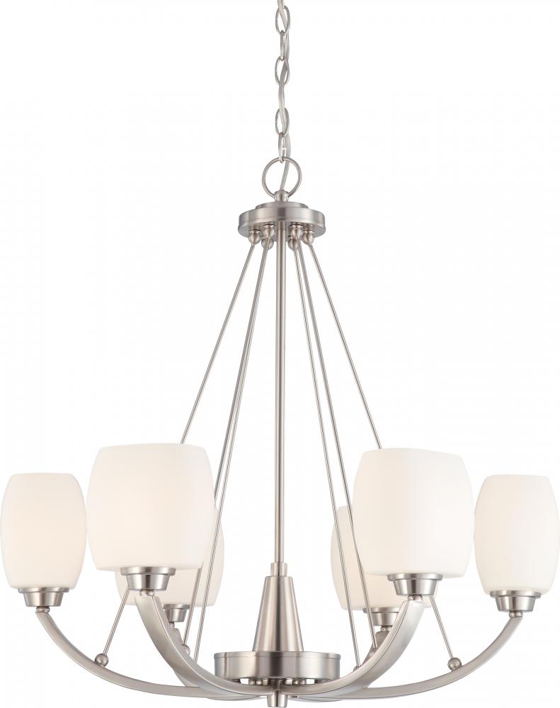 Helium - 6 Light Chandelier with Satin White Glass - Brushed Nickel Finish