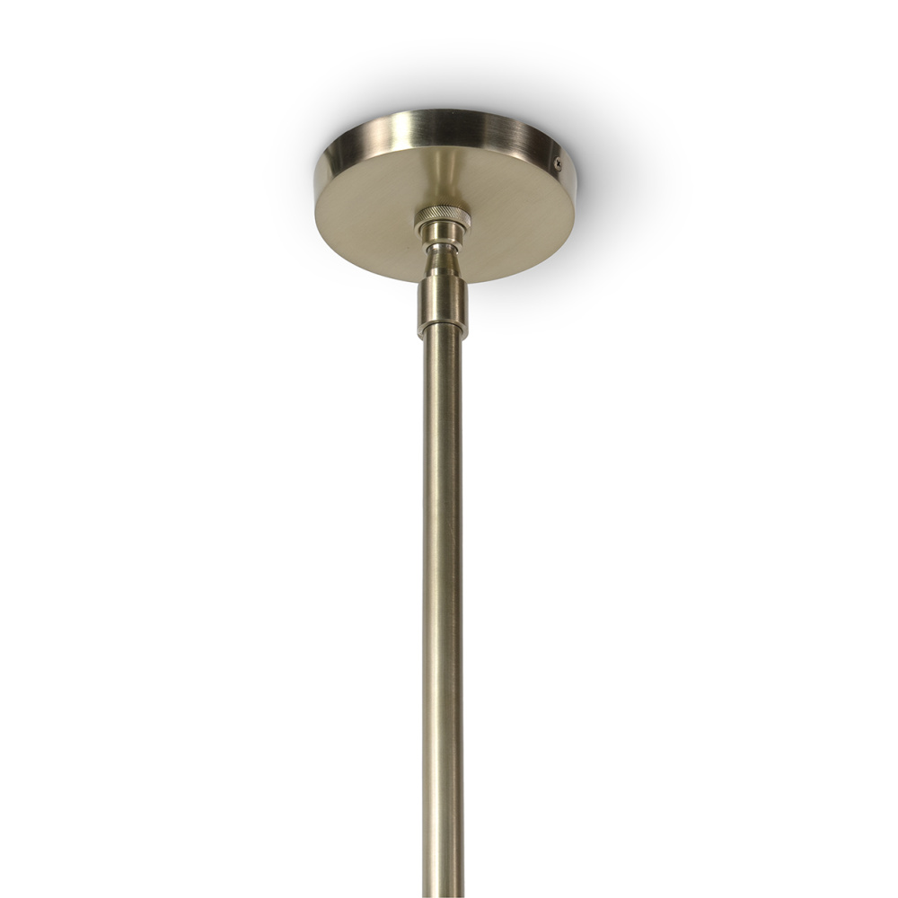 Chandelier features hand-stitched cream leather wrapped over metal shades, complemented with coiled bleached rattan details and champagne finished brass rods and canopy hanging kit. Adjustable assembly includes 1 x 18", 2 x 12" rods, 1 x 6" rod and 1 x 3"