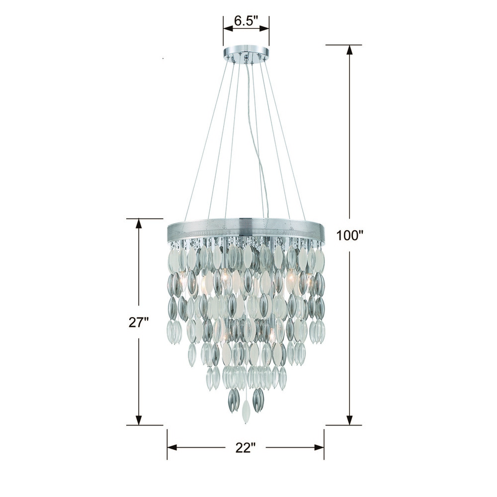 The Hudson collection features sparkling oversized solid glass beads in clear, frosted, and silver shadow cascading gracefully from its thick perforated metal base. The tiered presentation of multiple strands of oval glass offers a diffused ambiance that adds a sense of refinement and sophistication to many spaces and décor styles.