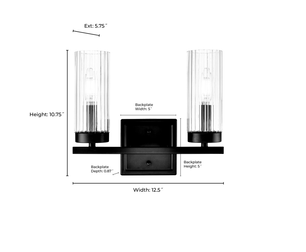 Iversen 12.5" Wide 2-Light Vanity - Matte Black