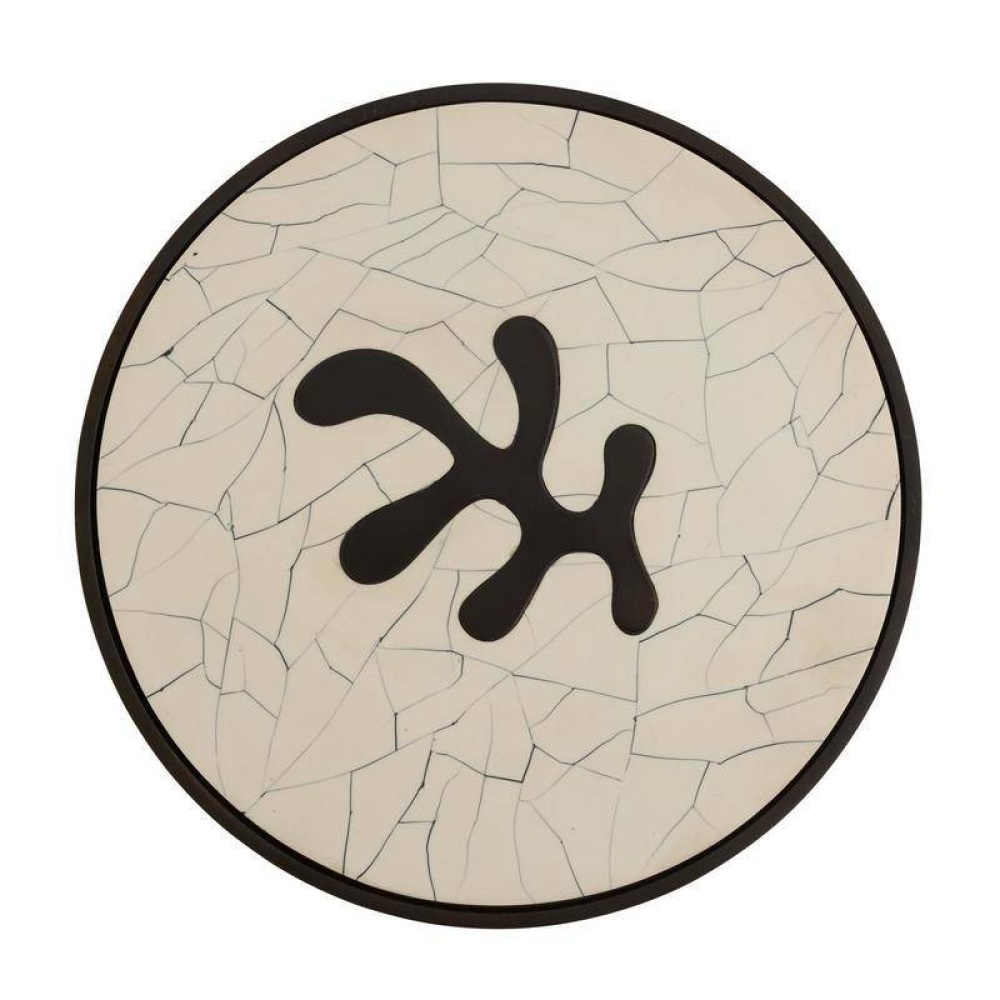 Inspired by Matisse's fluid shapes, a free-form floral motif lends an artistic edge to the beige crackled resin surface of our table. The bronze iron fluted base is enhanced with antique brass iron, adding a two-tone accent to intrigue the eye. Finish will vary.