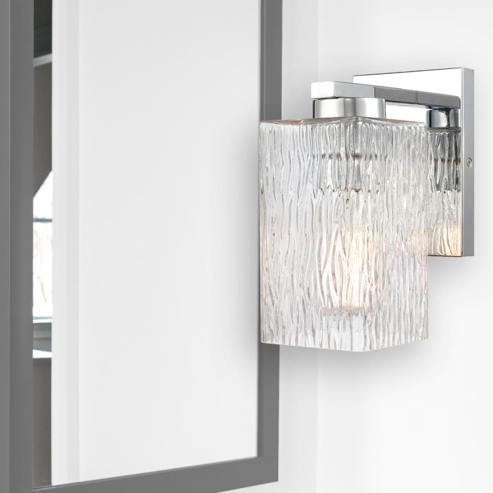 Warm lighting meets cool details. The Juneau collection stands out with its rectangular textured glass shade that is reminiscent of an ice block. Edison style bulbs bring warmth and dimension to all three finishes available.