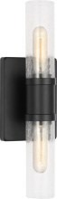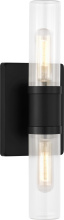 Sleek and modern, this 2-Light bath series pairs a square backplate With tubular clear crackle glass shade. The Keaton two light vanity fixture provides abundant light for your bath vanity, while adding a layer of today's style to your interior design.