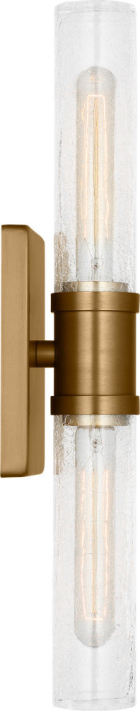 Sleek and modern, this 2-Light bath series pairs a square backplate With tubular clear crackle glass shade. The Keaton two light vanity fixture provides abundant light for your bath vanity, while adding a layer of today's style to your interior design.